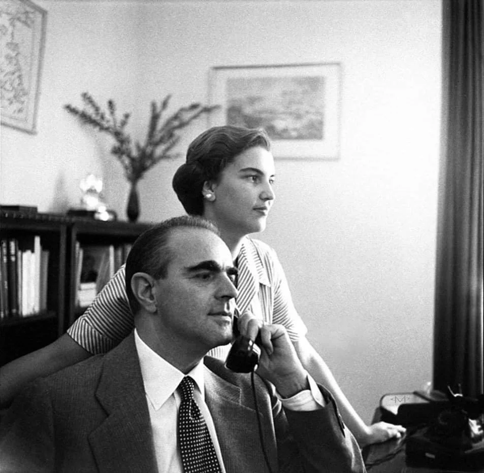 /Ο Κωνσταντίνος Καραμανλής στο σπίτι του, με τη σύζυγό του Αμαλία, στις 15 Οκτωβρίου 1955, όταν διορίστηκε πρωθυπουργός, μετά τον θάνατο του Αρχιστράτηγου, Αλέξανδρου Παπάγου